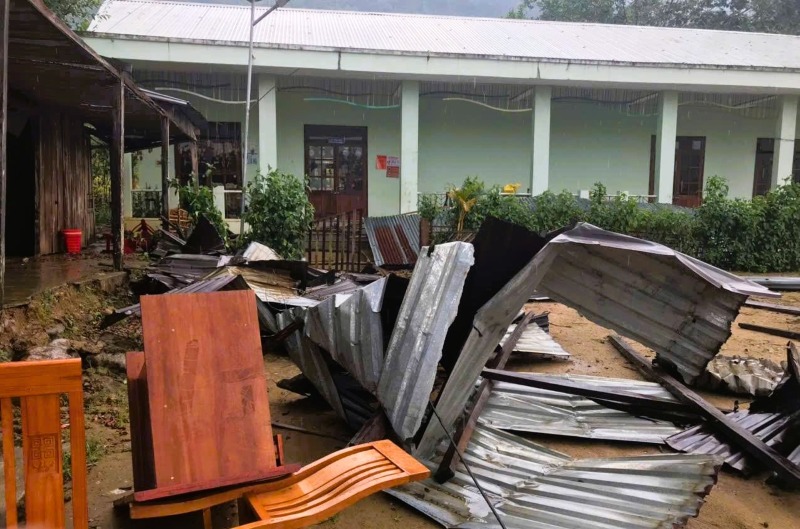 Đà Nẵng - De fortes pluies accompagnées de tornades ont soudainement balayé la commune frontalière de La Êê, provoquant l'arrachement des toits et des dommages à de nombreuses maisons d'habitants, maisons culturelles de village et écoles.