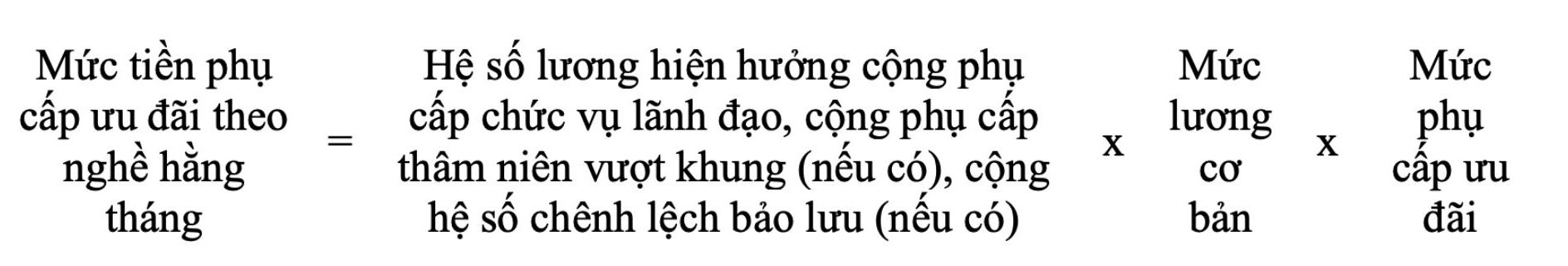 b) Pour les enseignants qui ne sont pas payes selon le coefficient de salaire stipule dans le decret n° 204/2004/ND-CP du gouvernement le montant des allocations preferentielles professionnelles mensuelles est calcule comme suit :