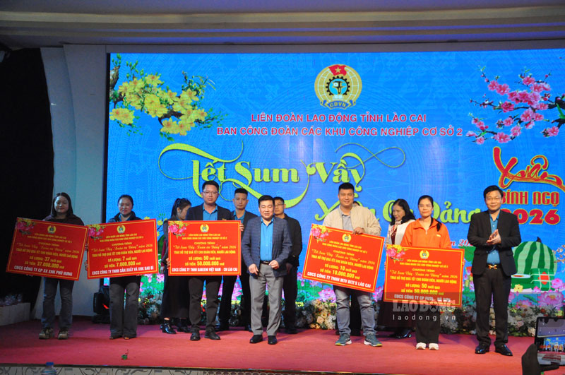Lào Cai - Des centaines de millions de dongs de soutien ont été remis par le Comité syndical des zones industrielles et économiques de la province lors du programme "Tết Sum vầy - Printemps de la gratitude envers le Parti".