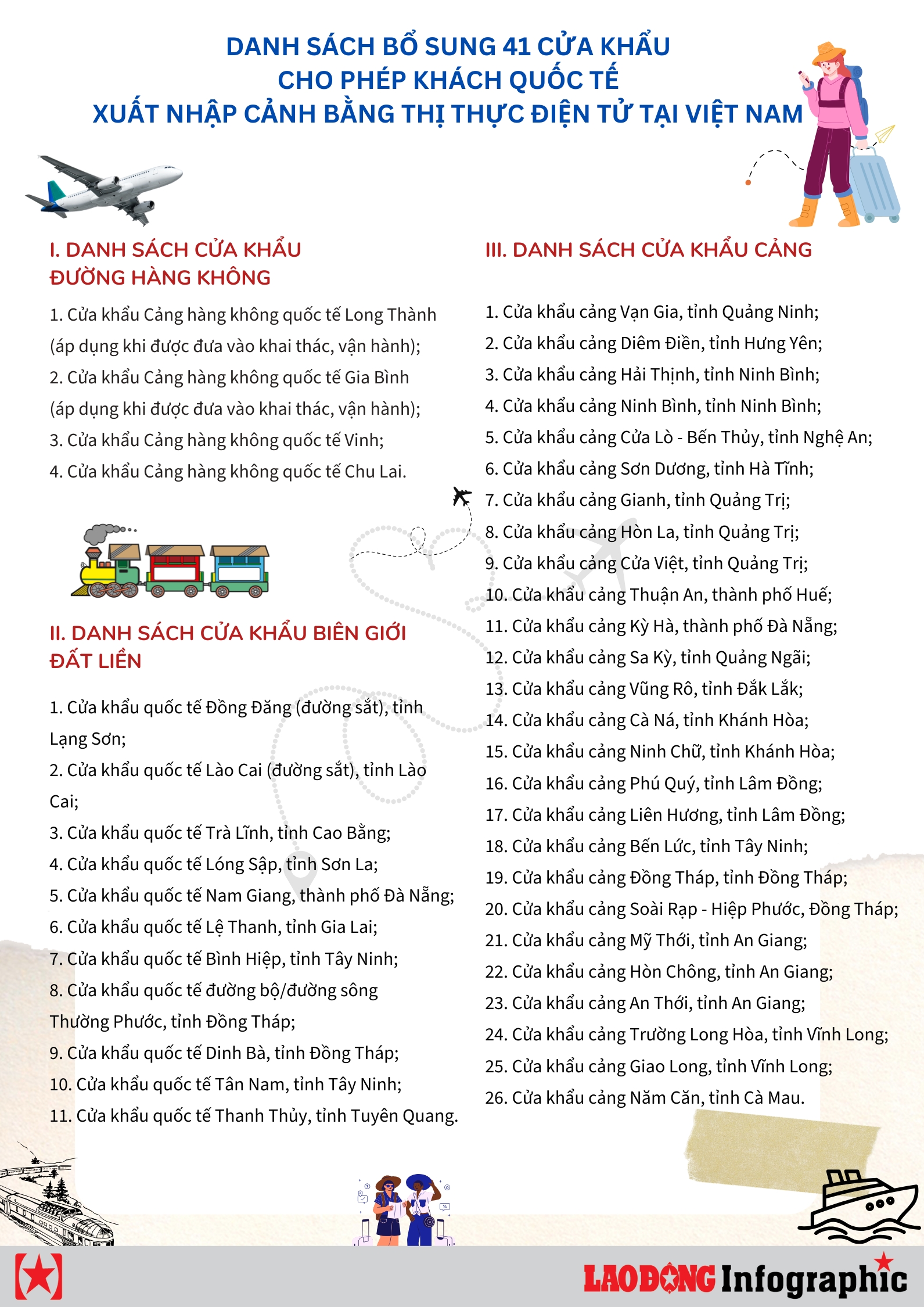 La mise à jour de 41 postes frontières autorise les touristes internationaux à utiliser des visas électroniques
