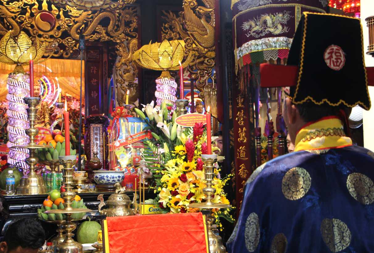 Immédiatement après la cérémonie d'ouverture, un flot de personnes s'est allongé dans le sanctuaire principal pour offrir de l'encens, les offrandes étant principalement des fruits, des noix de bétel... des objets simples mais imprégnés de culture traditionnelle.