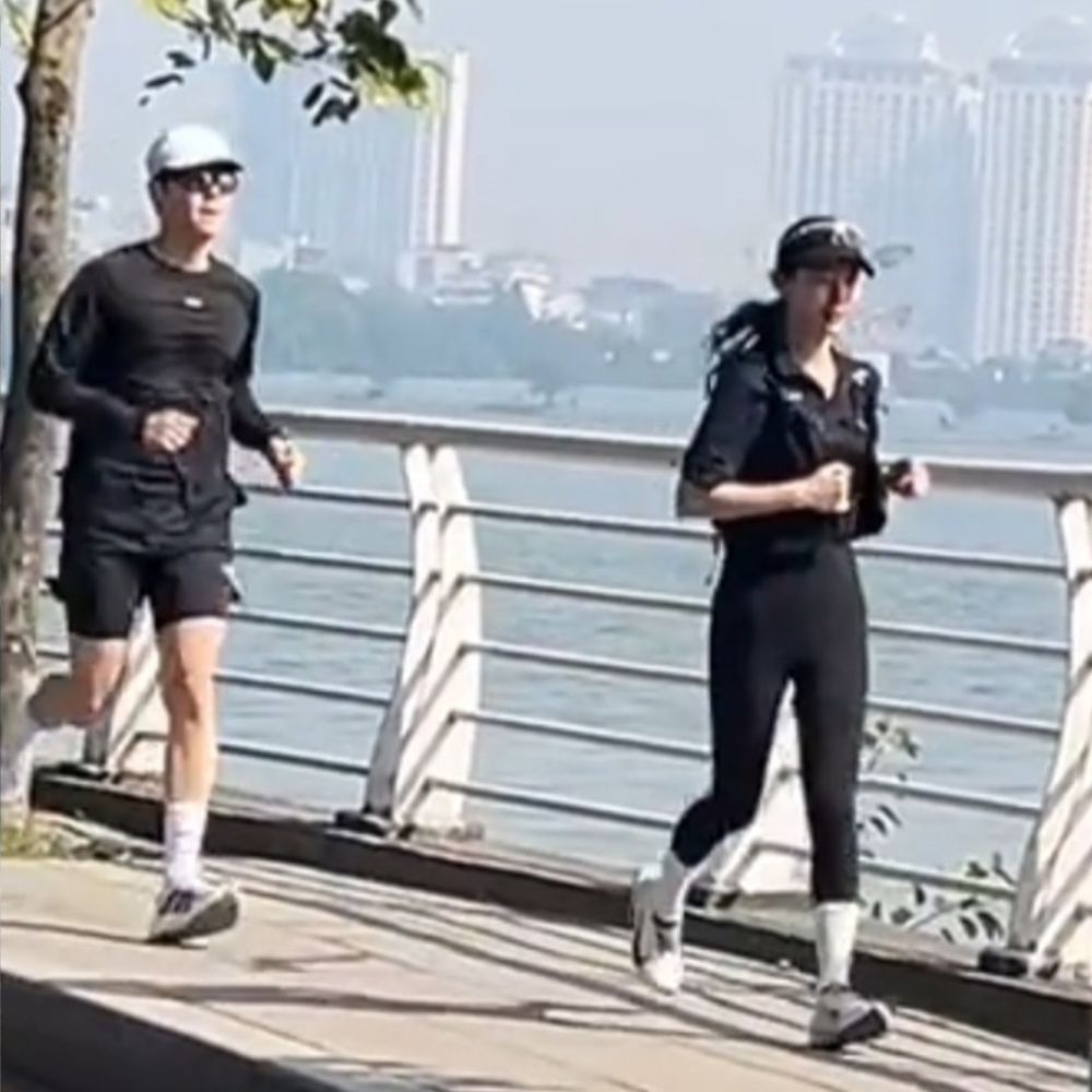 L'équipe de course avec les deux acteurs comptait également 2 à 3 autres personnes. Suzy et Kim Seon Ho portaient des vêtements de sport noirs confortables et un chapeau à la langue. Les moments de tournage en détail montrent Suzy laissant son visage nu et montrant sa beauté naturelle.