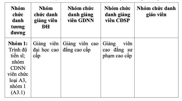 Les titres d'enseignant sont identifies comme equivalents lorsqu'ils partagent le meme groupe de titres de profession de fonctionnaire avec le meme coefficient de salaire. Le groupe de titres de profession de fonctionnaire et le coefficient de salaire sont mis en œuvre conformement aux dispositions de la loi sur les fonctionnaires.