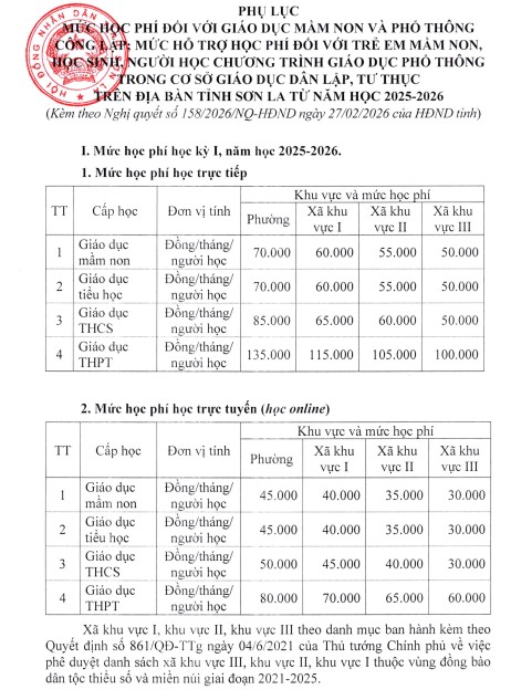 Le Conseil populaire de Sơn La vient de publier la résolution 158/2026/NQ-HĐND réglementant les frais de scolarité pour l'éducation préscolaire et primaire publique; le niveau de soutien aux frais de scolarité pour les enfants d'âge préscolaire, les élèves, les apprenants du programme d'enseignement général dans les établissements d'enseignement privés et semi-publics de la province à partir de l'année scolaire 2025-2026.