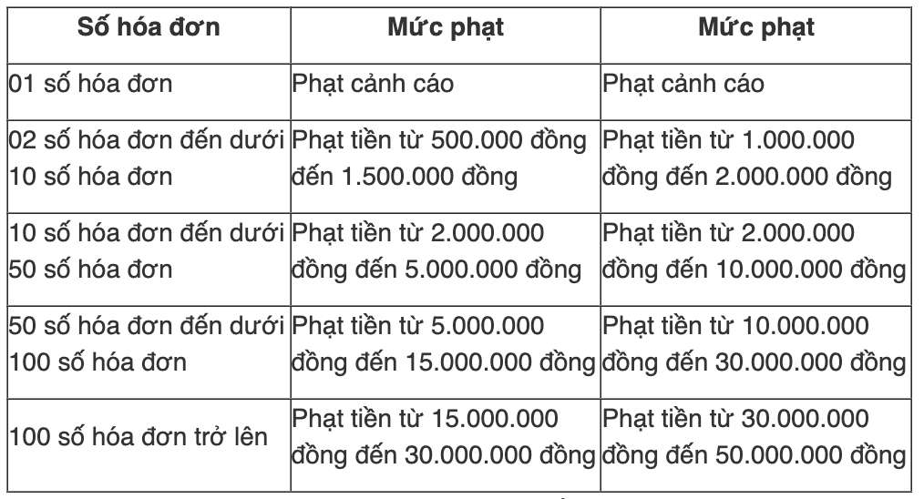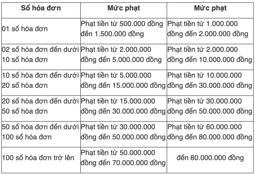Conformément au décret 310/2025/NĐ-CP modifiant le décret 125/2020/NĐ-CP sur les sanctions administratives en matière d'impôts et de factures entré en vigueur le 16 janvier 2026 le niveau d'amende pour les actes de non-établissement de factures et de non-établissement de factures au bon moment pour la vente de biens et la fourniture de services est le suivant :