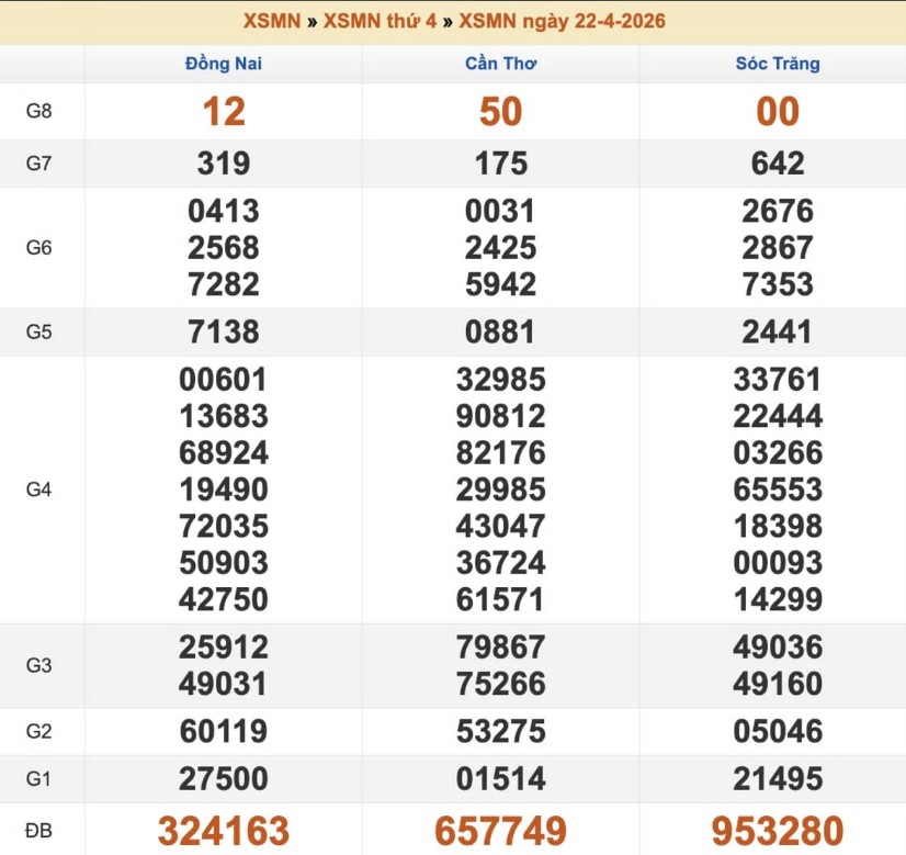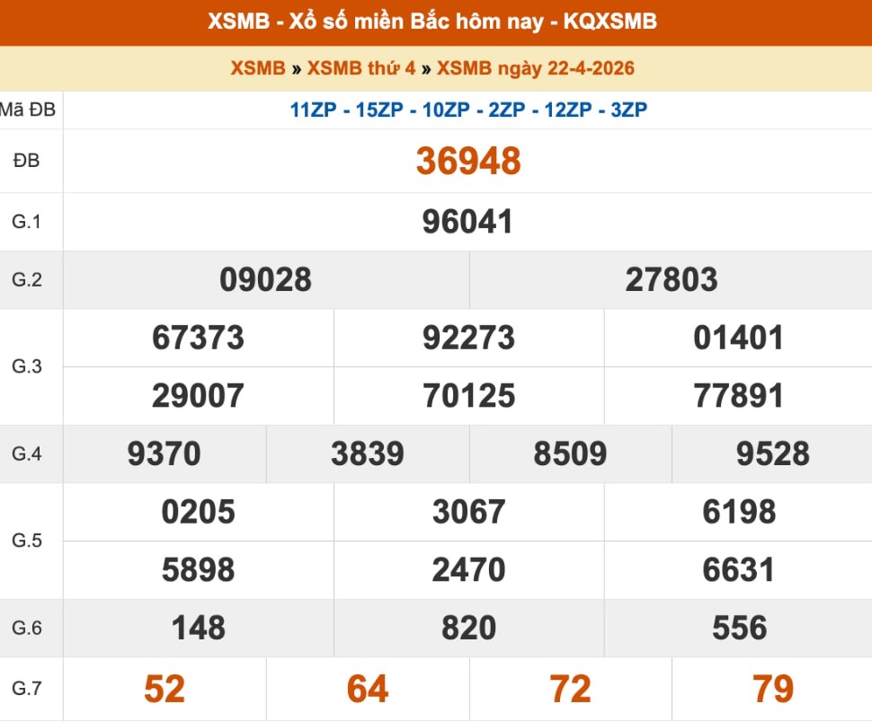 Les lecteurs peuvent consulter les résultats de XSMB du 22 avril 2026.
