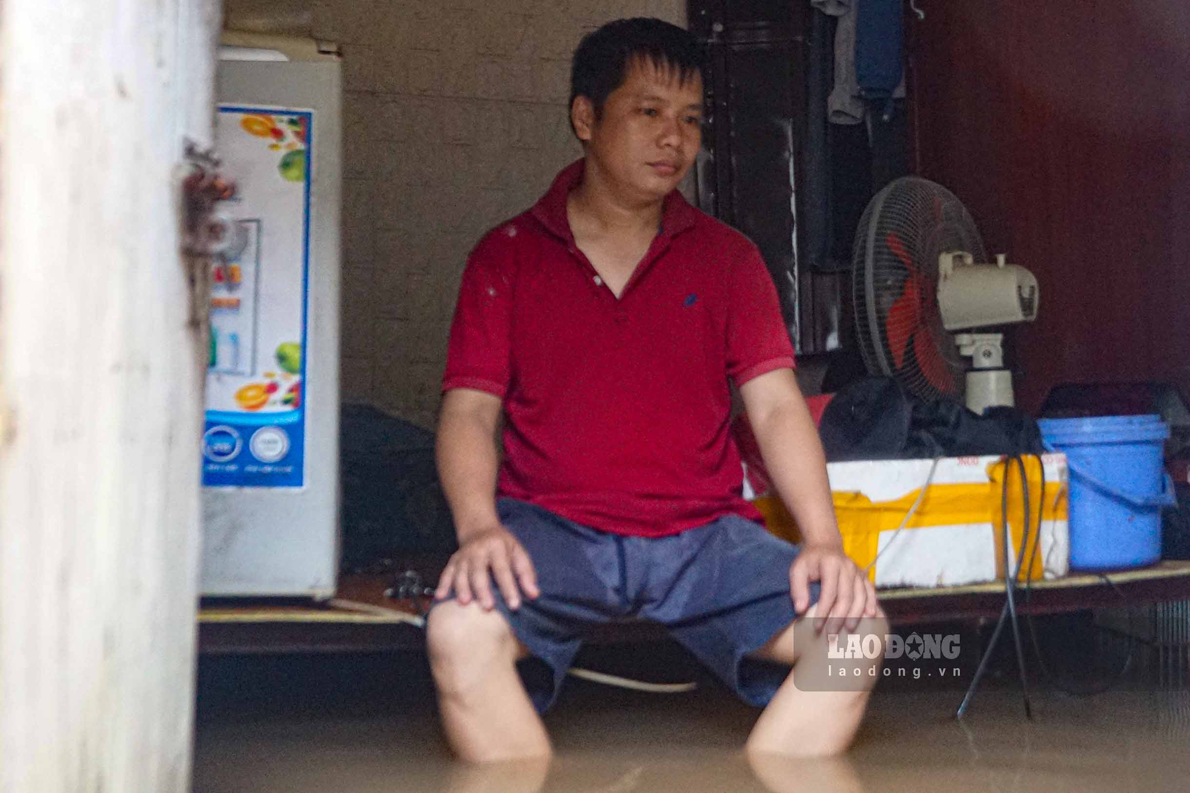 Des ouvriers demandent a partir travailler de nombreux logements paralyses par les inondations a Hanoï