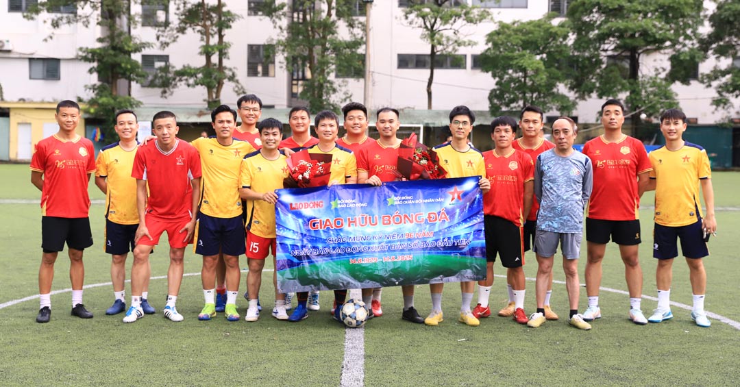 HANOI - Deux equipes du journal Lao Dong et du journal de l'armee populaire par rapport au match amical ont eu lieu dans l'apres-midi de 1,8 au stade Yen Hoa (Cau Gay Ward).