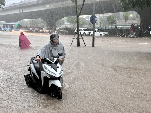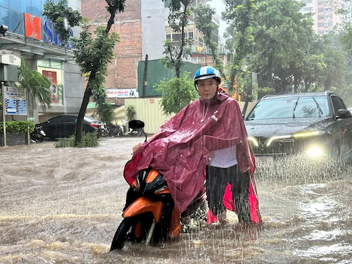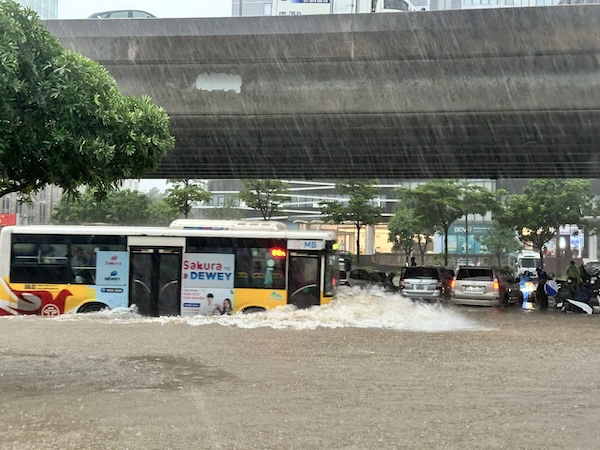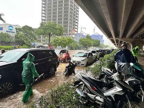 Lorsque j'ai atteint la moitie de la route la zone de la rue Khuat Duy Tien a ete profondement inondee ce qui a empeche les vehicules de se deplacer' a declare Mme Dung.
