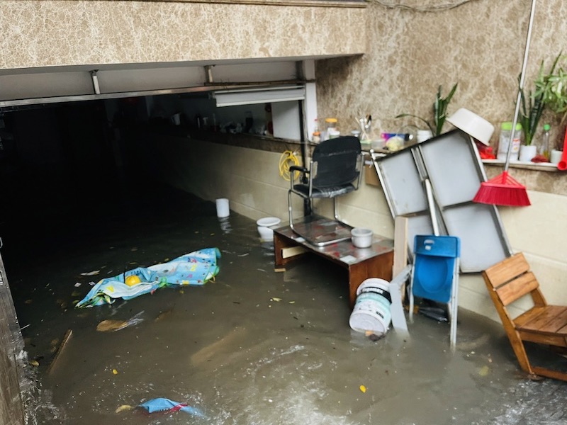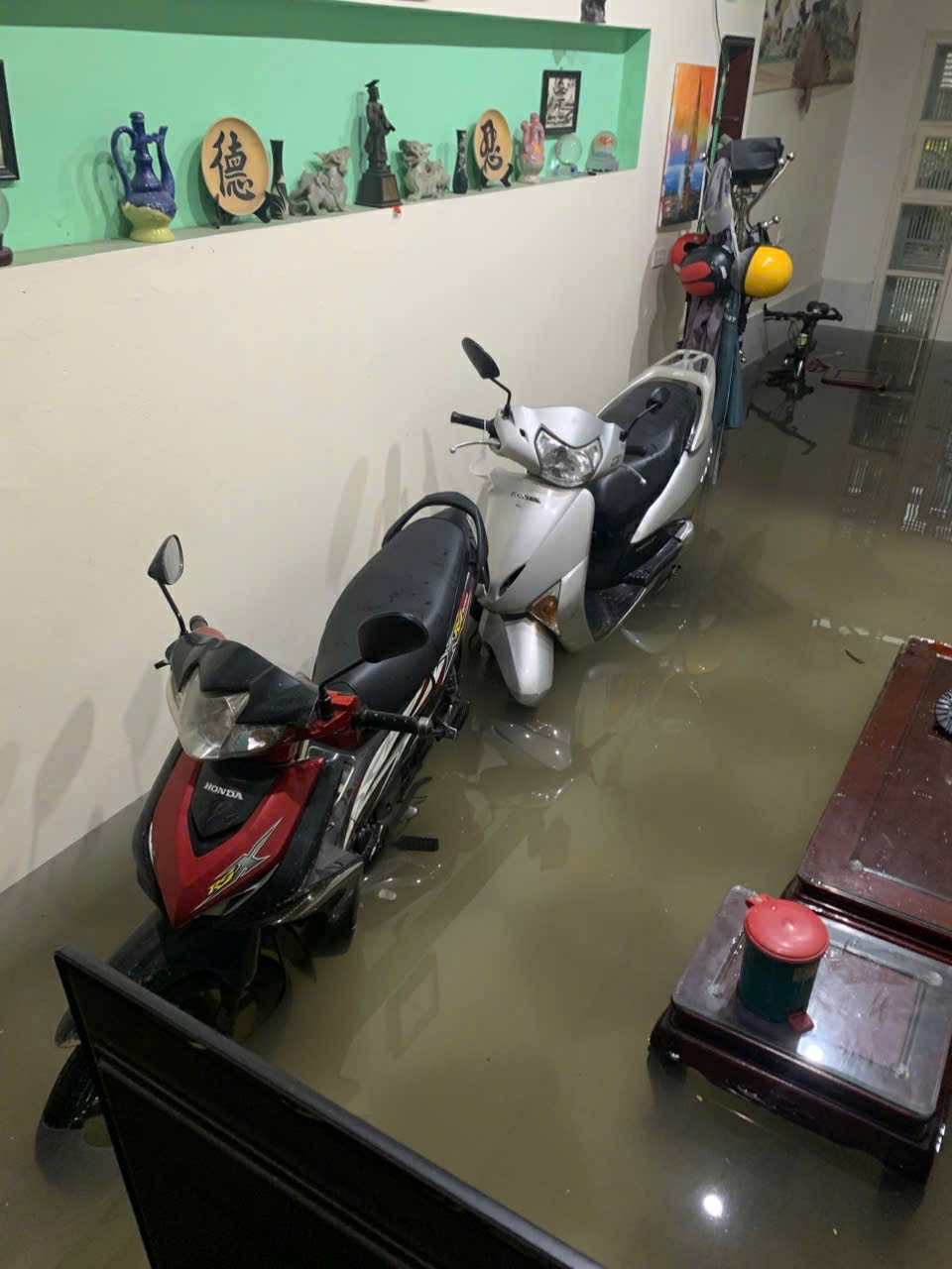L'eau etait de plus d'un metre de haut et s'est infiltree dans le 1er etage des le petit matin. J'ai dû eteindre le pont electrique pour assurer la securite tout le monde s'est deplace vers le 1er etage. Toutes les motos placees au 1er etage ont ete inondees et sont susceptibles d'etre endommagees apres cette pluie' s'est plainte Mme Hoang Anh.