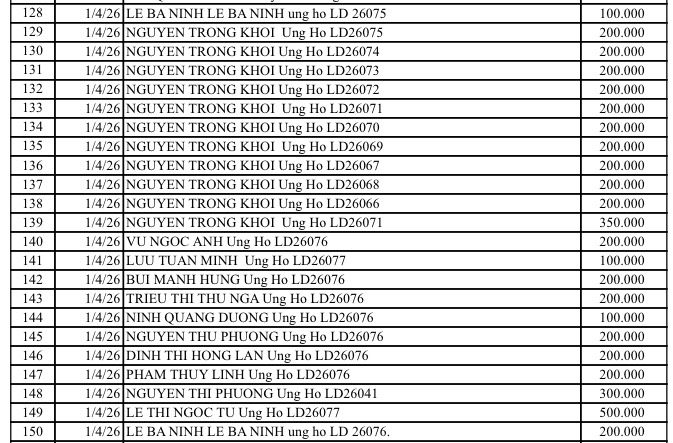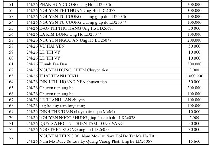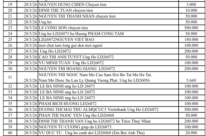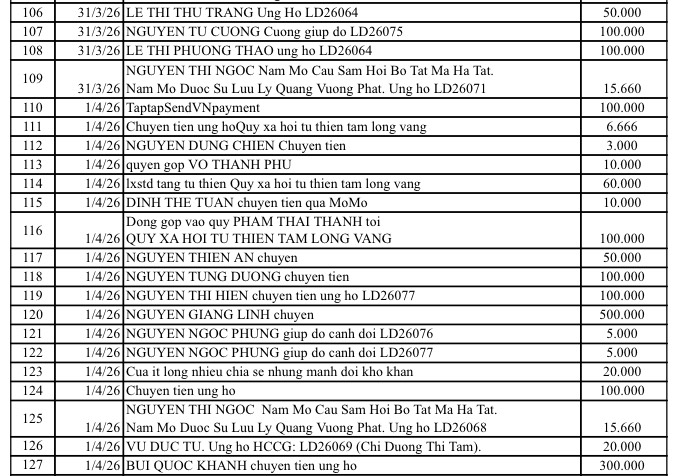 Le Fonds social caritatif Tấm lòng Vàng remercie sincèrement les précieux sentiments des agences, des entreprises et des bienfaiteurs nationaux et étrangers.