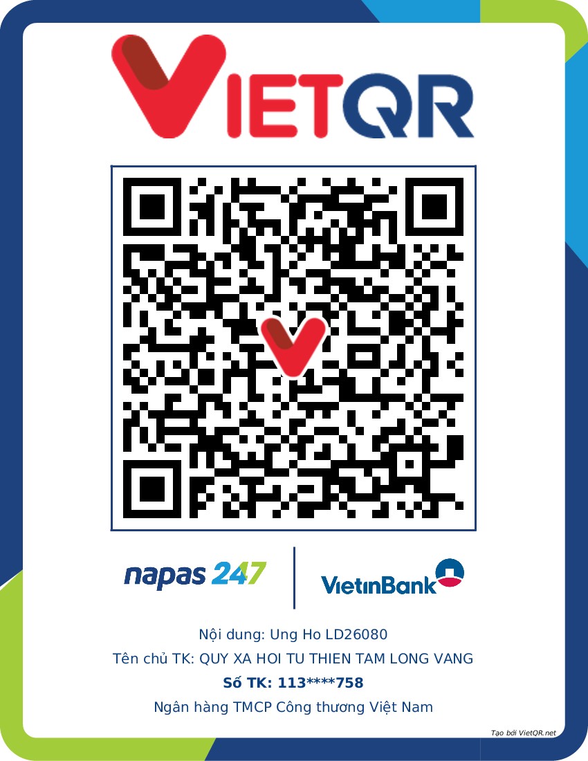 Toute aide pour la situation de vie de LD26080, veuillez l'envoyer au Fonds social et caritatif Tấm lòng Vàng - 51 Hàng Bồ, district de Hoàn Kiếm, Hanoï. Numéro de compte (STK) 113000000758 chez Vietinbank, succursale de Hoàn Kiếm, Hanoï; STK: 0021000303088 - chez Vietcombank, succursale de Hanoï; STK: 12410001122556 - chez BIDV, succursale de Hoàn Kiếm.