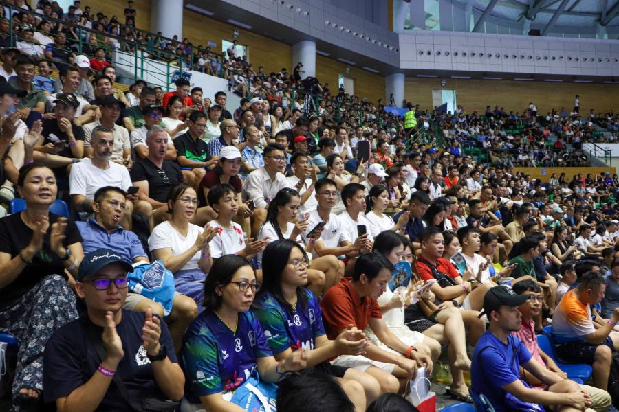 De nombreux fans affluent chez eux pour jouer au Palais des sports de Tien Son (ville de Da Nang). Tres rapidement apres cela les rangees de sieges dans les tribunes sont toutes bondees creant un cadre anime.