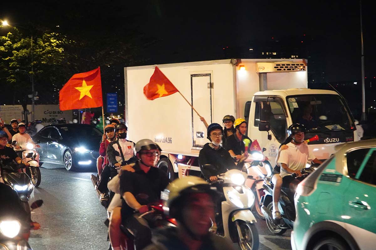 Ho Chi Minh-Ville - La victoire de l'equipe vietnamienne U23 contre l'equipe sud-coreenne U23 a fait exploser la rue pietonne Nguyen Hue, les habitants de Ho Chi Minh-Ville ont deferle dans les rues pour celebrer a l'aube du 24 janvier.