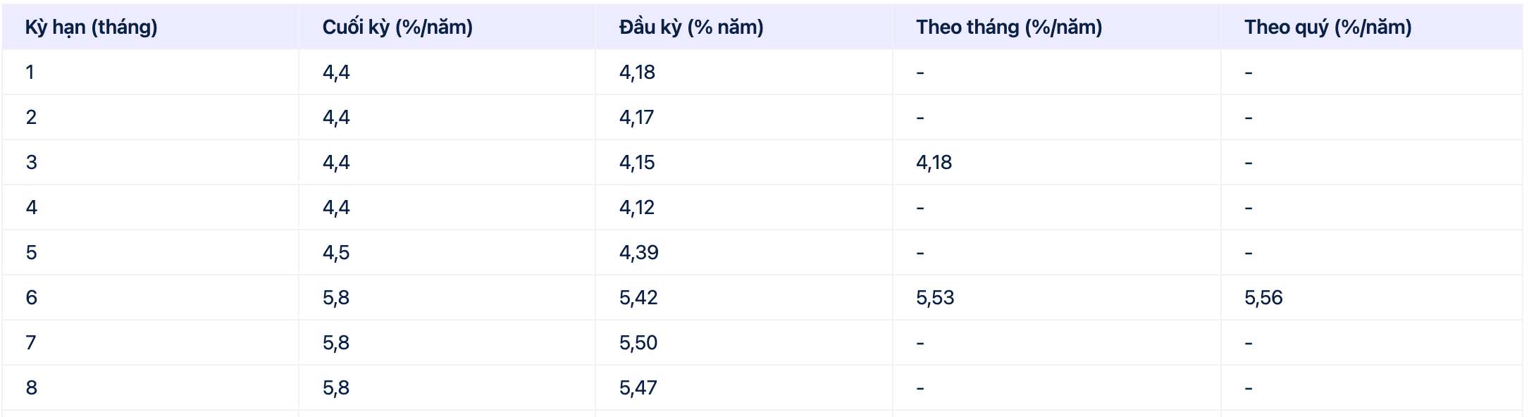 Pour les autres echeances Cake by VPBank affiche des taux d'interet de 4 12 a 6 %/an.