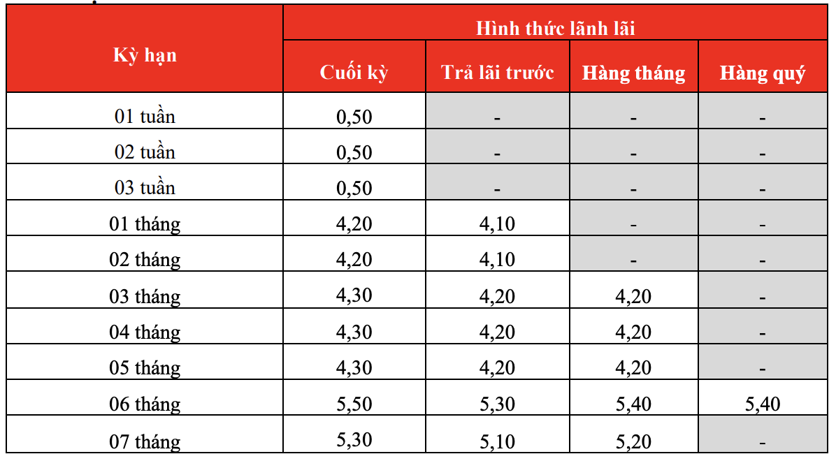 Cependant ce taux d'intérêt s'accompagne de conditions assez strictes : les clients doivent avoir un apport d'épargne minimum de 500 milliards de VND ou plus et doivent verser un intérêt à la fin de la période. Il s'agit d'une politique préférentielle spécialement conçue pour le segment des clients super VIP4.