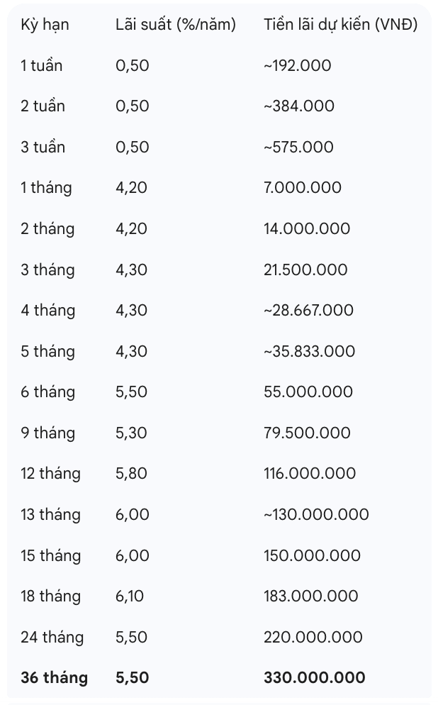 Dépôt d'épargne de 2 milliards de VND en ligne combien reçoivent les intérêts?