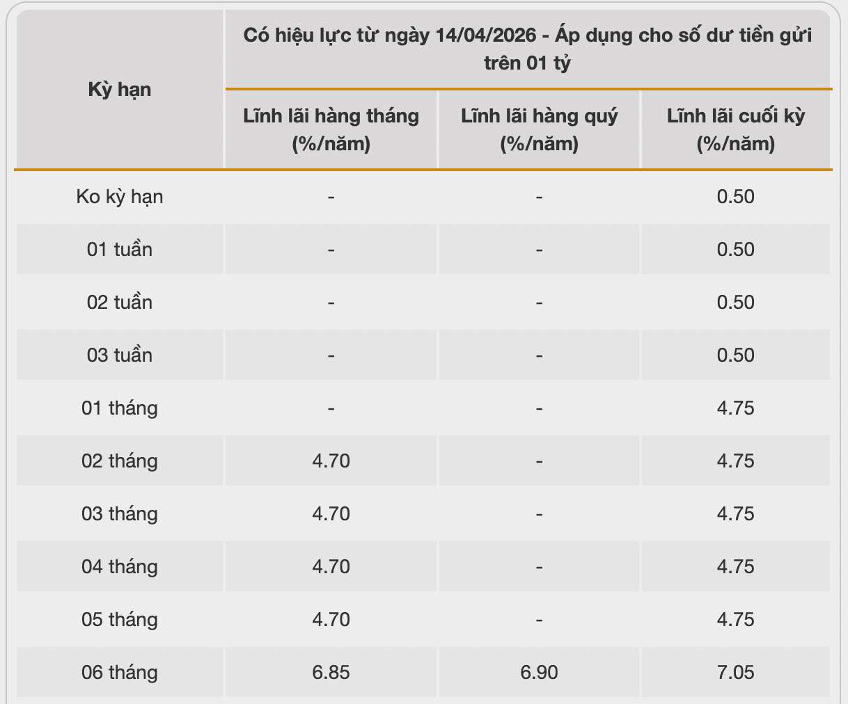 En conséquence, lorsque les clients déposent de l'argent pour la première fois à terme de 6 mois, ils bénéficieront d'un taux d'intérêt supplémentaire de 1,3%, recevant un taux d'intérêt élevé allant jusqu'à 8,5 %/an.