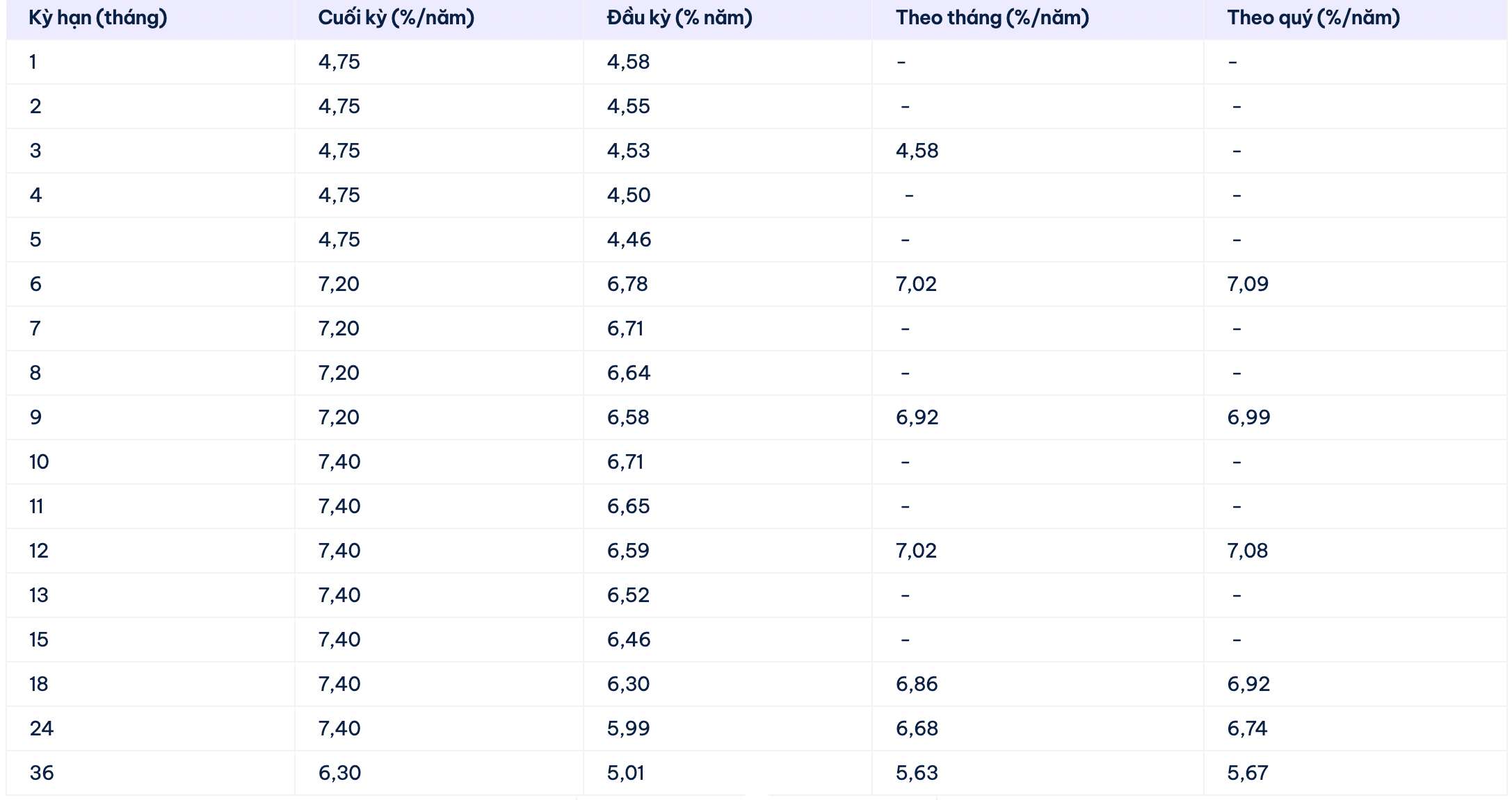 * Les informations sur les taux d'intérêt sont données à titre indicatif et peuvent changer à tout moment. Veuillez contacter le point de transaction bancaire le plus proche ou la hotline pour obtenir des conseils spécifiques.