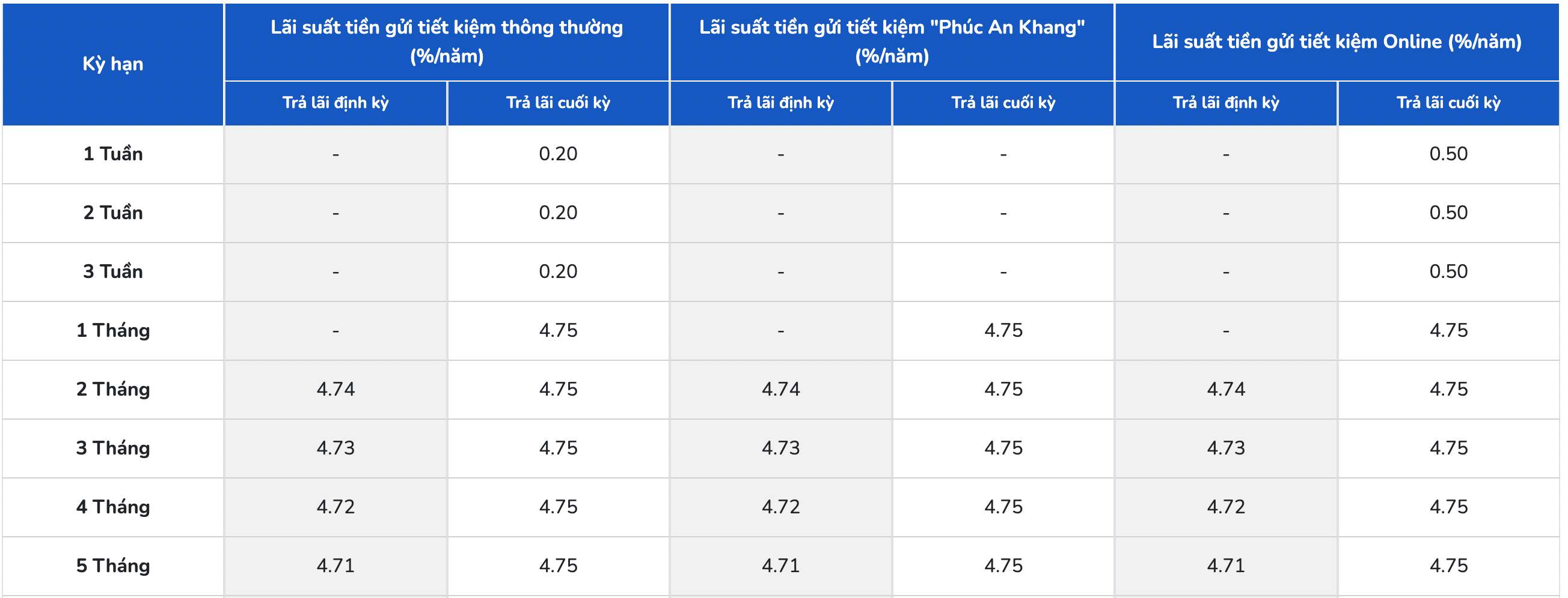 PGBank affiche le taux d'intérêt le plus élevé pour un terme de 6 mois à 6,9% par an lorsque les clients reçoivent les intérêts à la fin du terme. Actuellement, PGBank affiche le taux d'intérêt le plus élevé à 7% par an pour les échéances de 12 et 13 mois.
