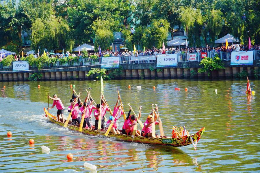 Le matin du 30 novembre le canal Nhiêu Lộc - Thị Nghè a brillé de vitalité dans le son des tambours et des cris retentissants lorsque le premier festival de course de bateaux Ngo cúp du quartier de Xuân Hòa élargi en 2025 a officiellement débuté. L'événement est en réponse à la Journée de la grande unité nationale et au festival Ok Om Bok les 14 et 15 octobre du calendrier lunaire.