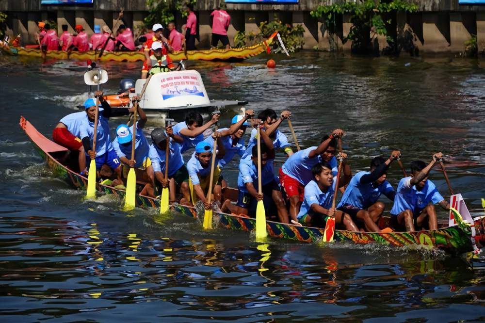 Dès le petit matin des équipes de bateaux venant d'An Giang et de Trà Vinh... étaient présentes au bord du canal. Les athlètes khmers ont commencé à tester chaque pas de chèo à ajuster les cordes et les cris rythmés du commandant ont créé une scène de préparation animée comme avant une grande bataille.