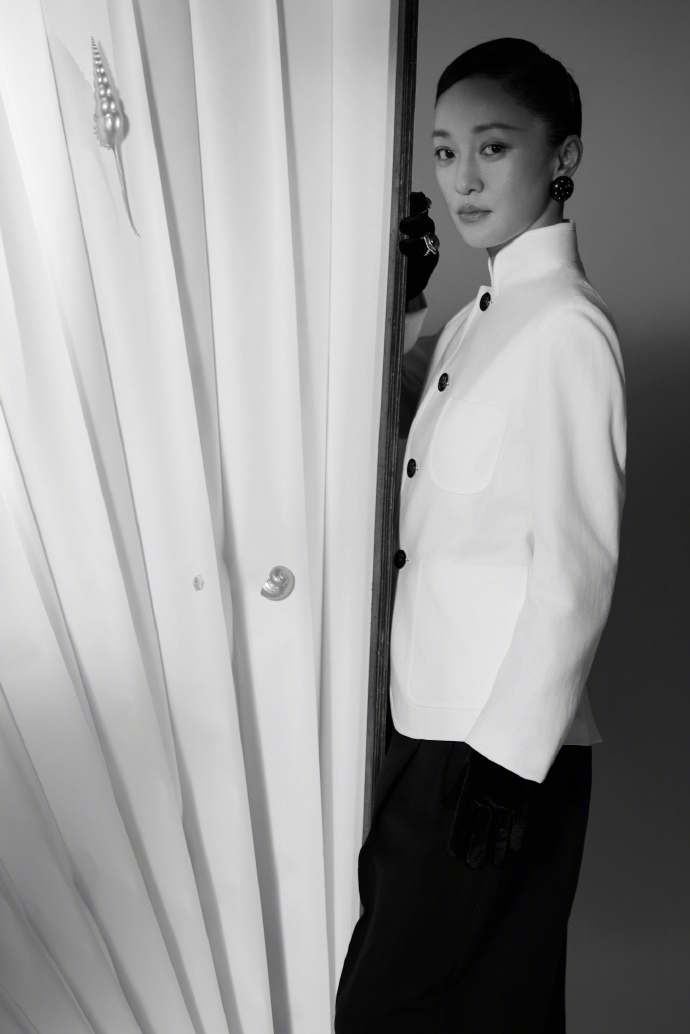 Dans un cadre, elle apparaît dans un costume blanc minimaliste, les cheveux soignés avec une expression froide, dégageant une beauté classique mais puissante. Dans un autre set, Châu Tấn porte une robe à franges motrices fortes, combinée à la lumière de la scène créant une sensation de spectacle d'art contemporain. Le contraste entre statique et dynamique, entre classique et moderne est exprimé avec souplesse par elle, montrant une capacité de transformation rare.