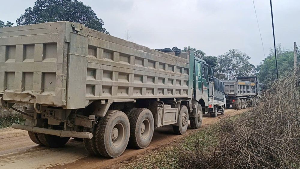 Stagnation a cause de la degradation de la route due aux vehicules de construction du projet portuaire de My Thuy