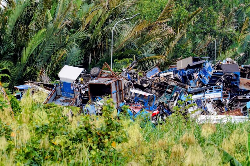 En outre le lot de biens comprend egalement 197 vehicules a trois roues endommages evalues a environ 2 3 millions de VND par vehicule ainsi que 141 motos artisanales au prix moyen de 670 000 VND par moto. Tous ces vehicules sont des preuves administratives de violations et ne remplissent pas les conditions d'enregistrement ou de circulation.