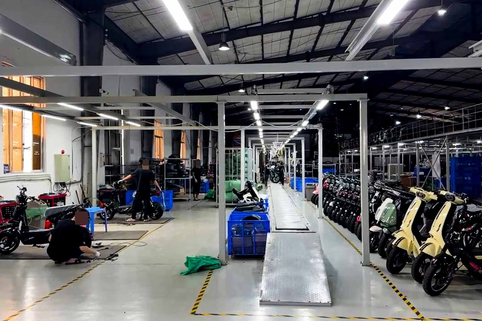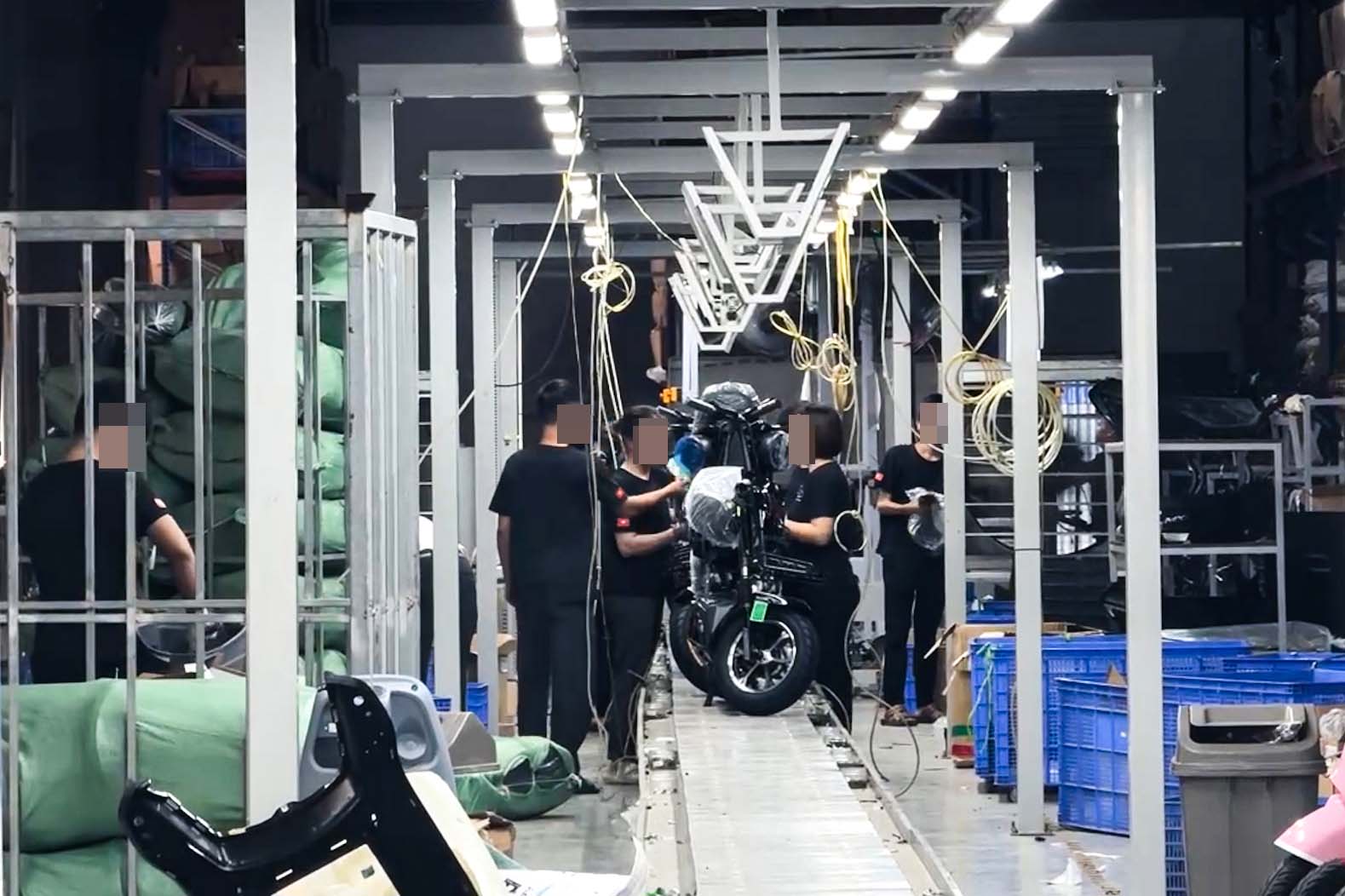 Presents ici les journalistes ont constate que l'interieur de l'usine etait rempli de motos electriques finis ainsi que d'une serie de pieces detachees et de composants en desordre.
