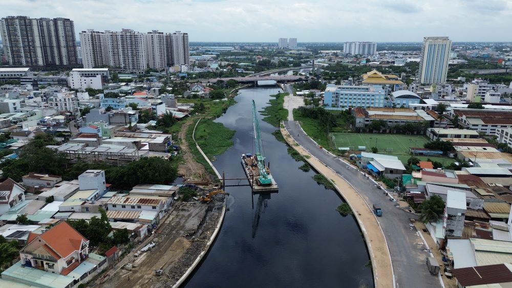A Ho Chi Minh-Ville l'atmosphere de construction des ouvrages cles se deroule de maniere urgente en particulier dans le projet de renovation des infrastructures du canal Tham Luong - Ben Cat - canal Nuoc Len. Il est considere comme l'un des projets moteurs du developpement urbain esperant a la fois lutter contre les inondations et ouvrir une nouvelle artere de transport pour la porte d'entree de l'ouest. Cependant le processus de mise en œuvre comporte encore de nombreux obstacles qui affectent directement l'objectif de decaissement des investissement
