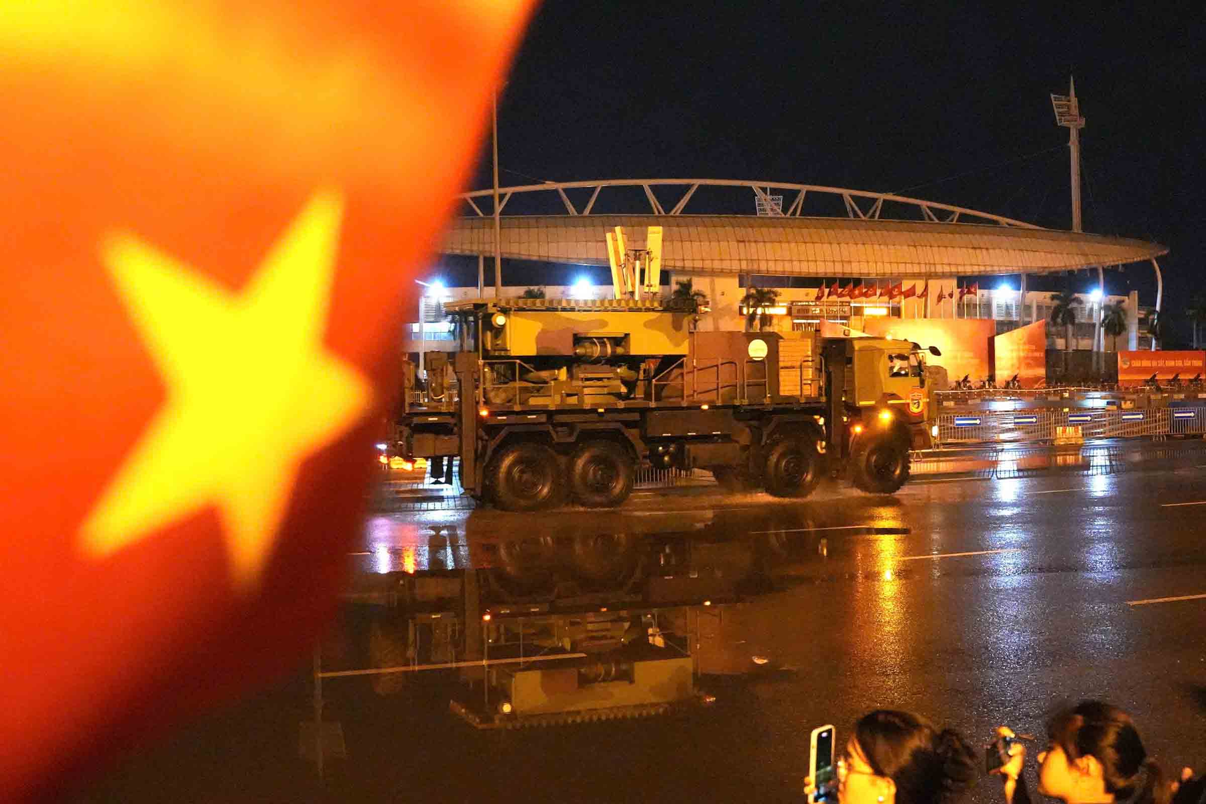 Hanoï - De nombreuses personnes sous la pluie suivent le rassemblement d'armes de l'armee et de la police se deplaçant du circuit de F1 vers le centre-ville pour le defile militaire general.