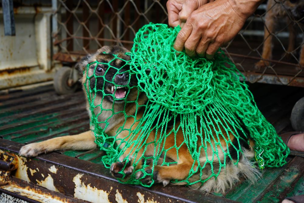 Ho Chi Minh-Ville - Apres pres de 4 heures l'equipe d'arrestation de chiens rotis du quartier de Hiep Binh a encercle et arrete 26 chiens. C'est l'effort du quartier pour prevenir et lutter contre la famine et l'esthetique urbaine.