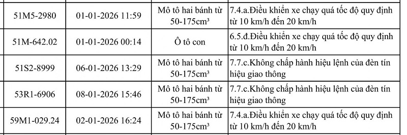 La police d'An Giang vient d'annoncer la liste des vehicules en infraction au code de la route condamnes a des amendes automatiques du 31 decembre 2025 au 14 janvier 2026. Parmi eux, de nombreux proprietaires de vehicules immatricules a Ho Chi Minh-Ville sont les suivants: