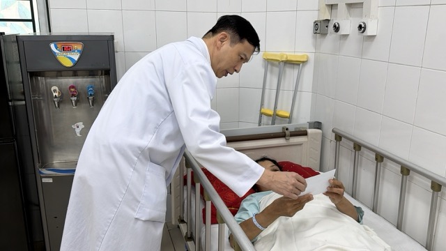 Le patient Trần Văn Sáu (né en 1984 - Thanh Hóa) vient de subir une opération chirurgicale après un accident de la route il y a environ un demi-mois, sa jambe est toujours clouée, M. Sáu est extrêmement douloureux. Mais lorsque la délégation de travail de l'équipe électorale est arrivée, M. Sáu a réprimé sa douleur, a joyeusement reçu sa carte d'électeur, a reçu son bulletin de vote, puis a calmement lu les informations sur les candidats aux députés du conseil populaire de la ville de Hanoï XVII, mandat 2026 - 2031.